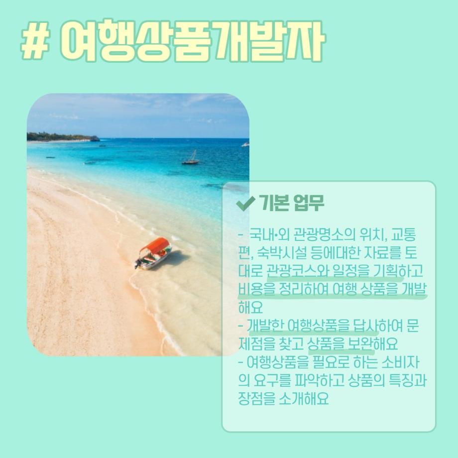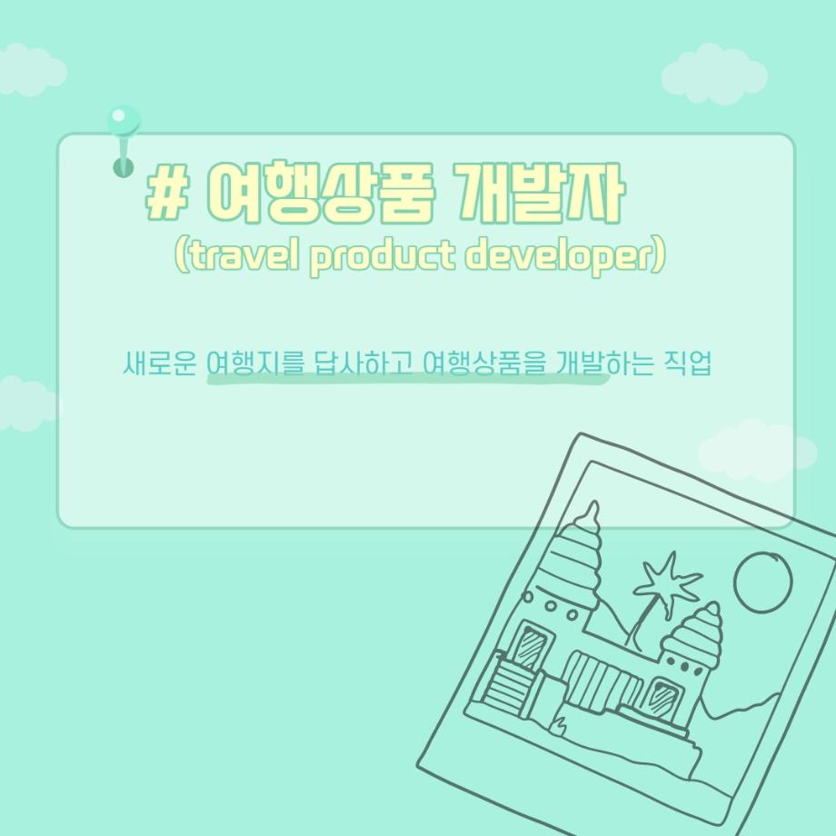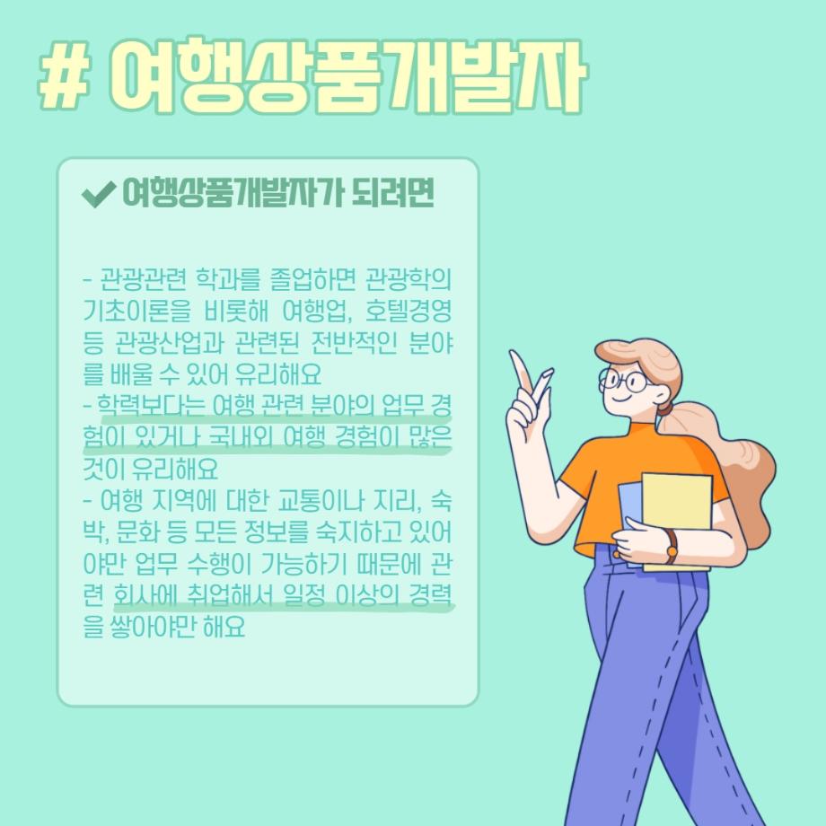 본문 시작 홈으로 머글 한줌단 학과안내 교수소개 교육과정 커뮤니티 머글 한줌단 홈페이지가이드 진로? 무물!! 어쩔 TV 저쩔 TV 진로? 무물!! TM Youtube TM Instagram TM Blog TM Facebook 진로? 무물!! 페이스북 트위터 프린트 여행상품개발자 관광경영학과 3095 2022-06-02 여행상품개발자(Travel Product Developer) 목록 이전항공사 승무원 (Steward / Stewardess) 다음 문화관광해설사(Cultural Heritage Guide) 만족도조사 만족도 조사 이 페이지에서 제공하는 정보에 대하여 만족하시나요? 매우만족 만족 보통 불만족 매우불만족