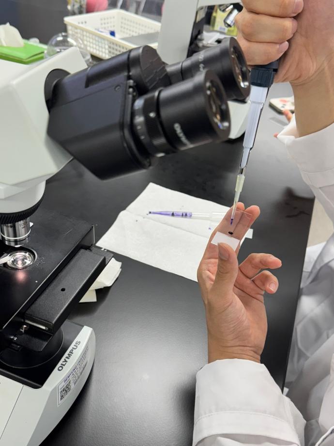 본문 시작 초생체염색 임상병리학과 459 2025-05-29 New Methylene blue 시약을 이용하여 그물적혈구를 보기위한 초생체염색 후 현미경으로 검경을 하였습니다 목록 이전혈액도말표본 제작 & 회식 다음 오리엔테이션&회식 담당부서 : 임상병리학과 담당자 : - 연락처 : 043-649-1537 최종수정일 : 2024-10-26 만족도조사 만족도 조사 이 페이지에서 제공하는 정보에 대하여 만족하시나요? 매우만족 만족 보통 불만족 매우불만족