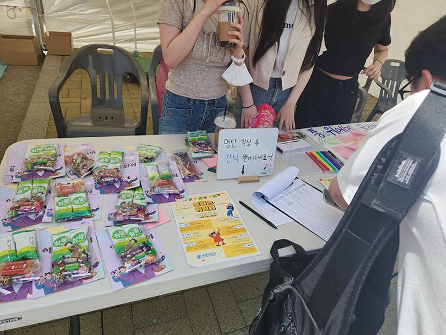사전신청 접수와 설문조사를 참여 시 간단한 게임을 통해 위원회에서 직접 포장한 간식을 제공하였다.