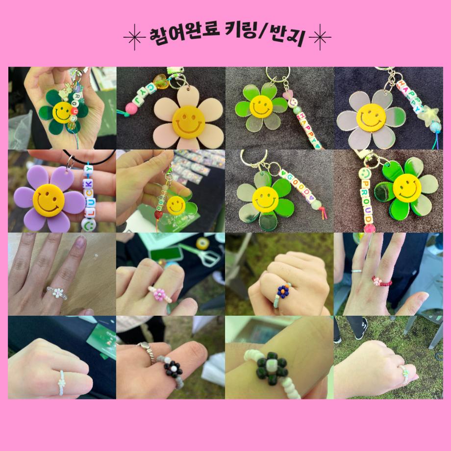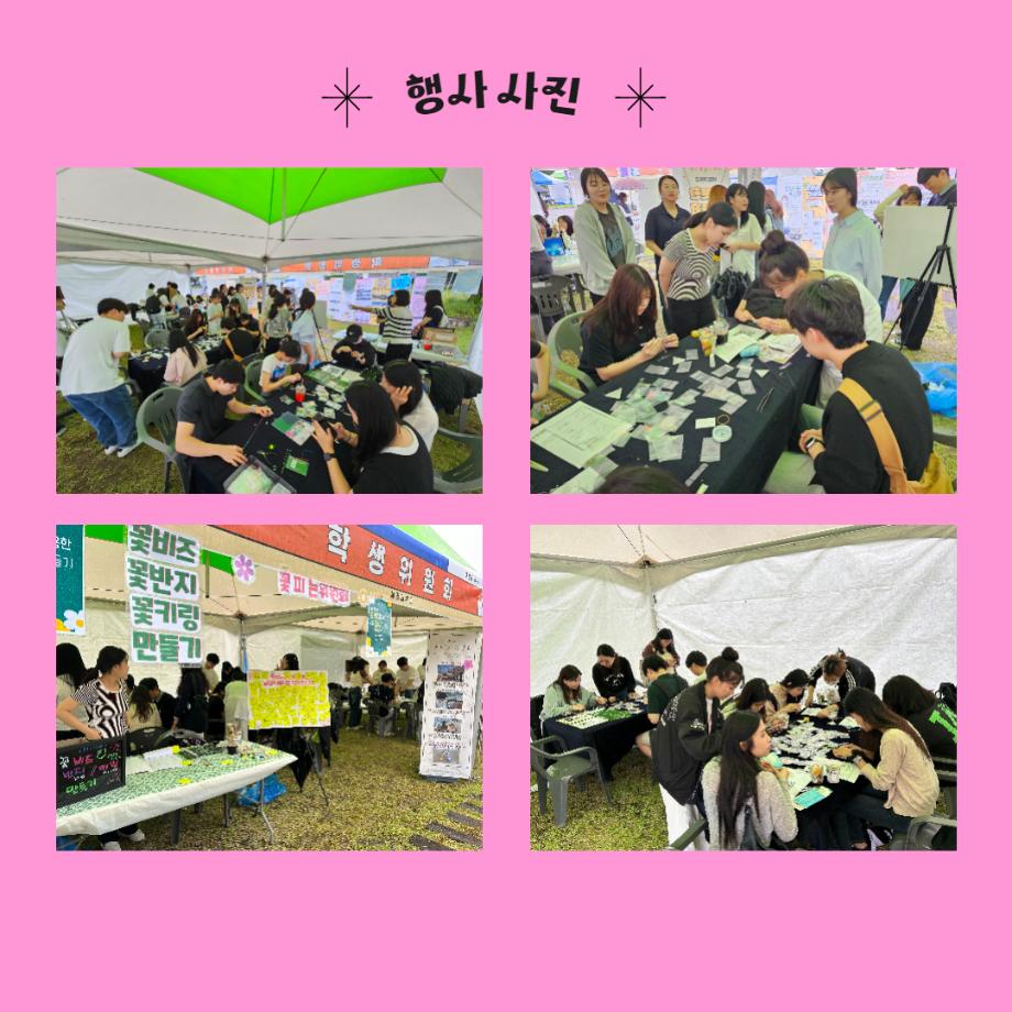 본문 시작 홈으로 포토갤러리 학생위원회 개요 학생위원회 소개 공지사항 활동결과 홈페이지가이드 포토갤러리 페이스북 트위터 프린트 [꽃피는 위원회] 비즈를 활용한 우정템(꽃반지,꽃키링) 만들기 학생처 2463 2023-09-22 꽃피는 위원회는 제 31회 청룡축전기간인 9/20일 뭐든지광장에서 비즈를 활용한 우정템 만들기 행사를 진행하였다. 총 100명의 구성원이 참여한 꽃피는 위원회 이번 활동은 위원회에 대한 응원메세지 작성 및 꽃반지 만들기, 꽃키링 만들기로 구성되어 진행되어 3시간 30분 동안의 활동시간 내내 참여자의 호응을 받으며 프로그램을 진행하였다. 목록 이전[생각하는 위원회] 생각게시판 결과 다음 [이상한 위원회] 학생식당 개선사항 SNS인증이벤트 담당부서 : 장학복지팀 담당자 : - 연락처 : 043-649-1142 최종수정일 : 2024-10-26 만족도조사 만족도 조사 이 페이지에서 제공하는 정보에 대하여 만족하시나요? 매우만족 만족 보통 불만족 매우불만족