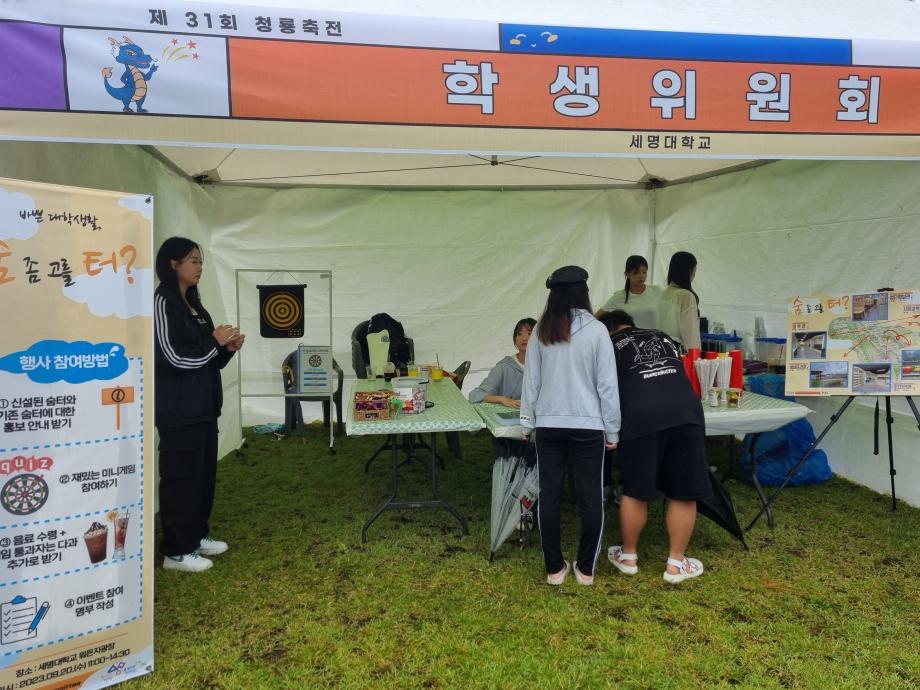 세명대학교 재미있는 경험을 위한 학생위원회 중 '맛있는 위원회'는 청룡축전 기간 중 9월 20일(수) 11시부터 14시 30분까지 뭐든지 광장에서 음료나눔행사를 진행하였다.