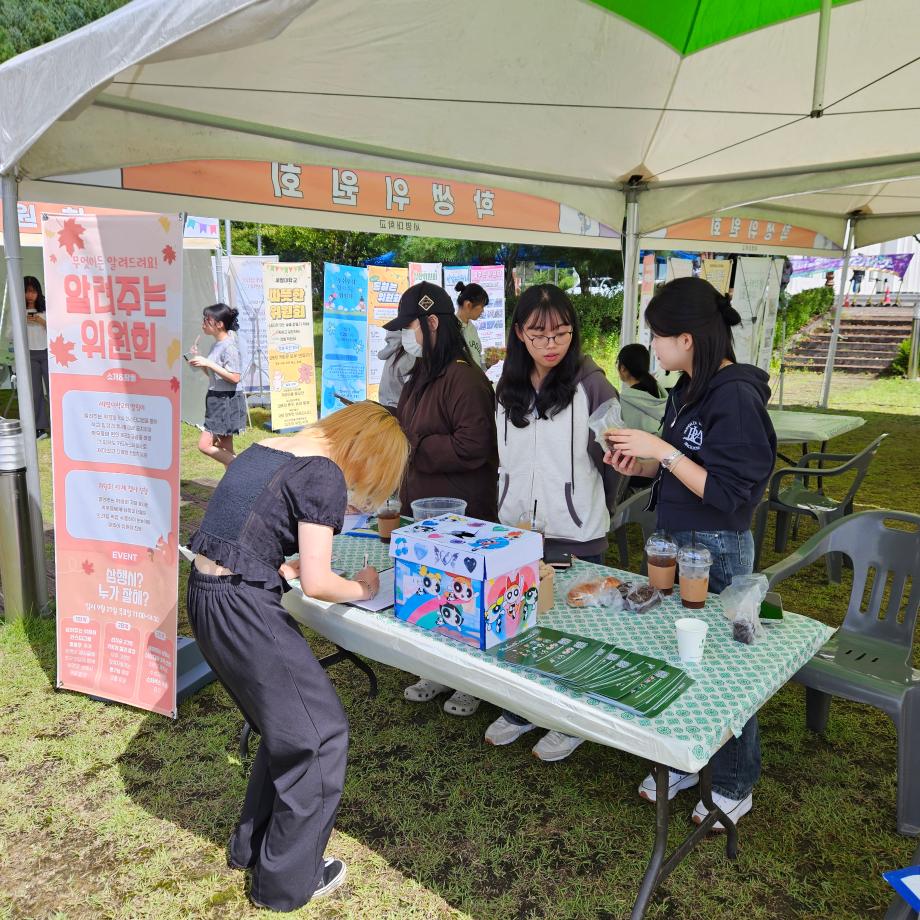 본문 시작 홈으로 포토갤러리 학생위원회 개요 학생위원회 소개 공지사항 활동결과 홈페이지가이드 포토갤러리 페이스북 트위터 프린트 [알려주는 위원회] 삼행시? 누가잘해 대학혁신지원단 1937 2023-10-05 알려주는 위원회는 2023년 9월 21일(목), 뭐든지광장에서 11시부터 14시 30분까지 <삼행시? 누가 잘해?> 홍보부스를 운영하였다. 선착순 키링 증정, 팔로우이벤트, ‘세명대’ 삼행시 이벤트를 운영하였으며, 총 95명의 학생이 참여하였다. 삼행시 이벤트 중, 가장 재치 있는 문구는 아래와 같다 세: 세시반에 명 : 명륜진사갈비갈래? 대 : 대박맛잇겟당’ 목록 이전[통하는 위원회] MZ투표부스운영 다음 [ 약속하는 위원회] 약속바구니 담당부서 : 장학복지팀 담당자 : - 연락처 : 043-649-1142 최종수정일 : 2024-10-26 만족도조사 만족도 조사 이 페이지에서 제공하는 정보에 대하여 만족하시나요? 매우만족 만족 보통 불만족 매우불만족