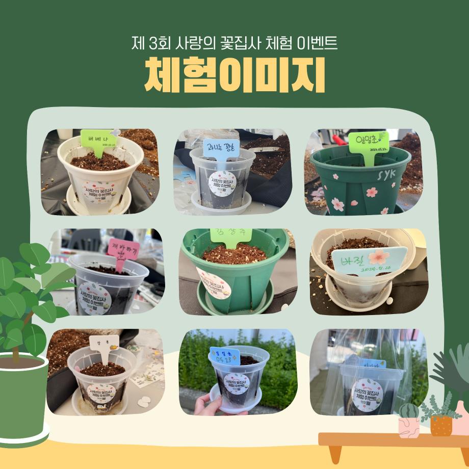 본문 시작 홈으로 포토갤러리 학생위원회 개요 학생위원회 소개 공지사항 활동결과 홈페이지가이드 포토갤러리 페이스북 트위터 프린트 [꽃피는 위원회] 제 3회 사랑의 꽃집사 체험이벤트 학생처 1654 2024-05-23 제 3회 사랑의 꽃집사 체험 이벤트 일시 : 2024.05.23(목) 12:00 ~ 15:00 장소 : 학생회관 앞 광장 참여인원 : 본교 구성원 114명 (꽝 15명, 채소씨앗 30명, 꽃씨앗 67명) 참여한 구성원분들의 식집사 체험 성공을 기원합니다. 목록 이전[맛있는 위원회] 맛그램 틀렸그램 다음 [생각하는 위원회] 대형 현수막 문구 공모전 '준비 시~작' 담당부서 : 장학복지팀 담당자 : - 연락처 : 043-649-1142 최종수정일 : 2024-10-26 만족도조사 만족도 조사 이 페이지에서 제공하는 정보에 대하여 만족하시나요? 매우만족 만족 보통 불만족 매우불만족