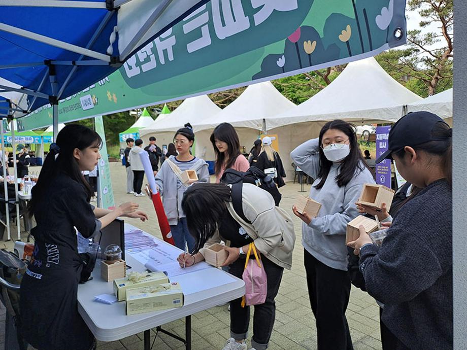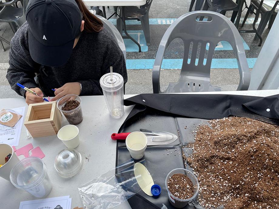 총 100여명의 재학생이 마가렛, 미니해바라기, 채송화 씨앗을 복불복으로 결정하여 직접 씨앗을 상토에 심는 체험을 진행하였다.