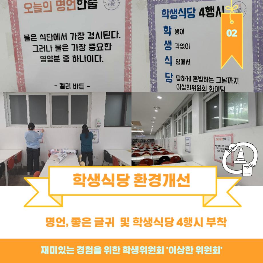 본문 시작 홈으로 포토갤러리 학생위원회 개요 학생위원회 소개 공지사항 활동결과 홈페이지가이드 포토갤러리 페이스북 트위터 프린트 [이상한 위원회] 학생식당 환경개선 및 특별메뉴 판매 학생처 9102 2023-07-07 이상한위원회 특별메뉴 판매 목록 이전[학생위원회] 2023 간담회 및 유니폼 착복식 시행 이전[춤추는 위원회] 제 2회 청춘콘서트 담당부서 : 장학복지팀 담당자 : - 연락처 : 043-649-1142 최종수정일 : 2024-10-26 만족도조사 만족도 조사 이 페이지에서 제공하는 정보에 대하여 만족하시나요? 매우만족 만족 보통 불만족 매우불만족