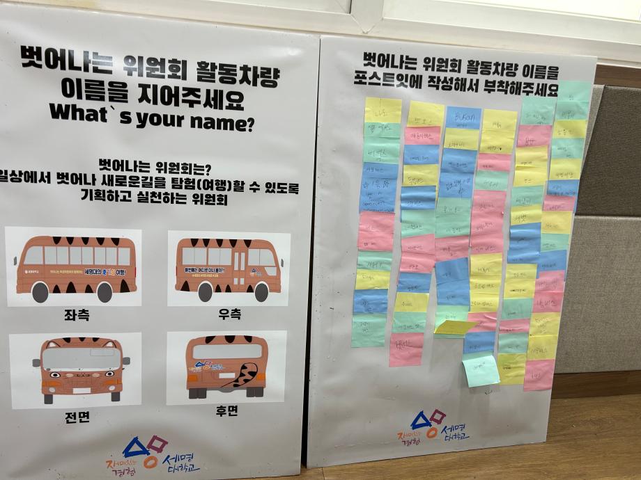 세명대학교 재미있는 경험을 위한 학생위원회 중 벗어나는 위원회가 9월 20일(수)에 교내 뭐든지광장에서 벗어나는위원회 홍보 및 활동차량 이름짓기 이벤트를 실시하였다.