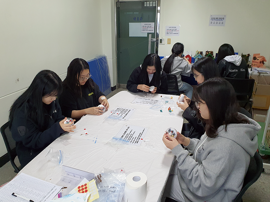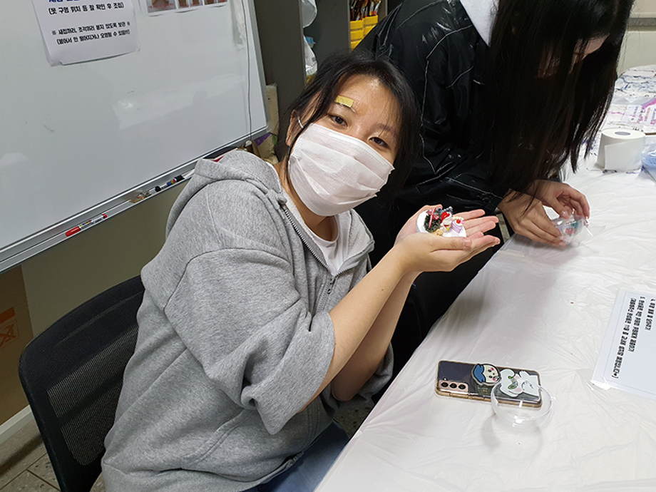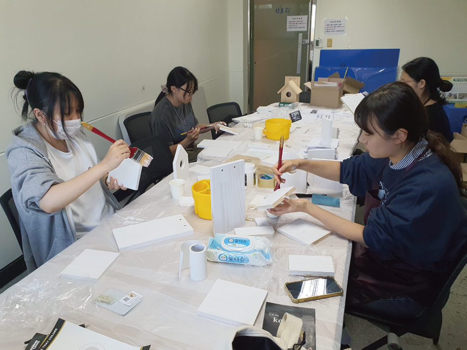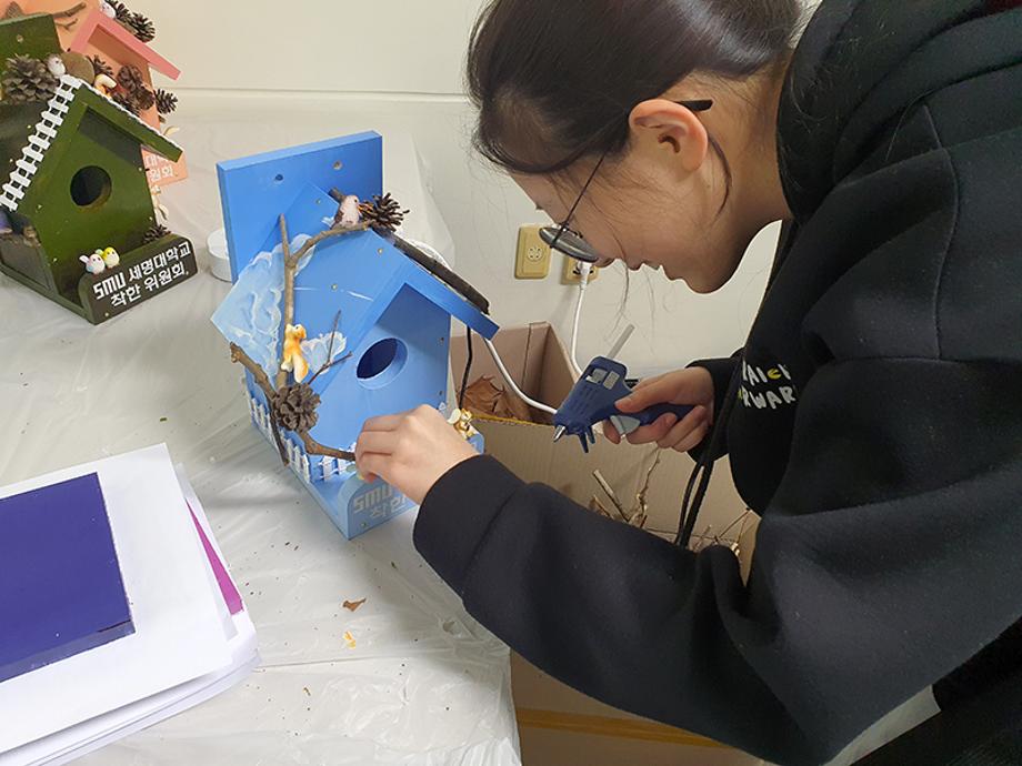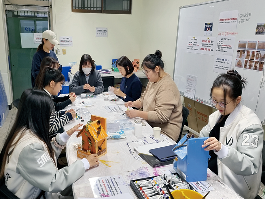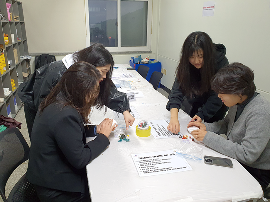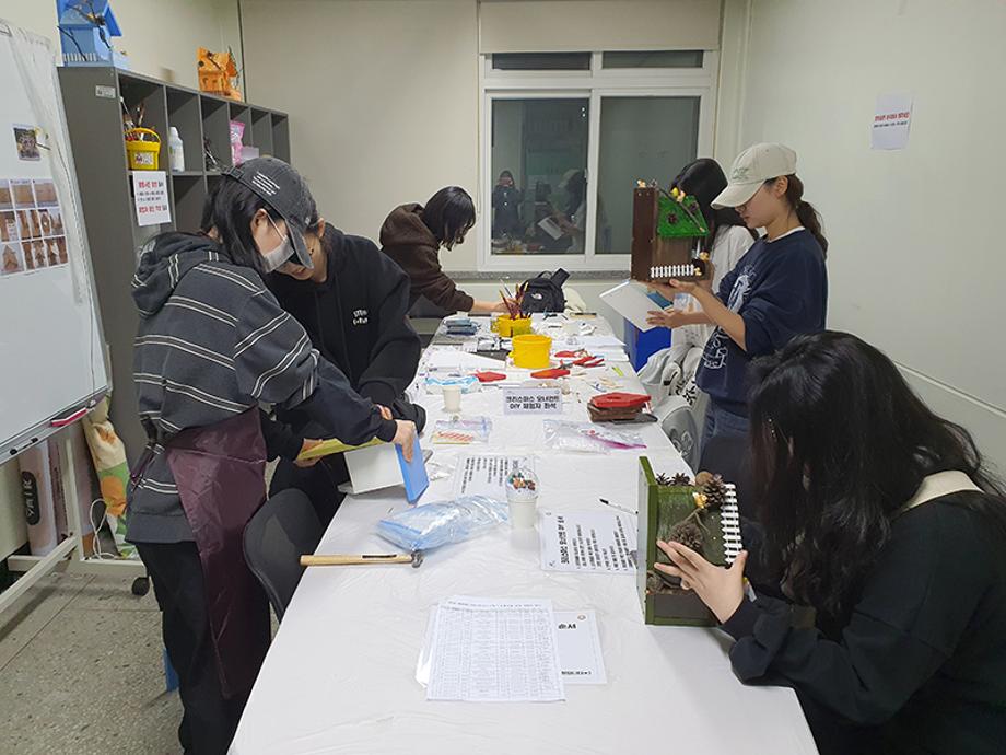 본문 시작 홈으로 포토갤러리 학생위원회 개요 학생위원회 소개 공지사항 활동결과 홈페이지가이드 포토갤러리 페이스북 트위터 프린트 [착한 위원회] 2023-2학기 포롱포롱 공방 운영 결과 학생처 4140 2023-11-02 [착한 위원회] 2023-2학기 포롱포롱 공방 운영 결과 1. 운영기간 : 2023년 10월 2. 운영장소 : 학생회관 519호 3. 운영내용 - 자연물과 미니어처를 활용한 새집 만들기 - 미니어처를 활용한 크리스마스 오너먼트 만들기 체험 4. 참여인원 : 54명 - 위원 12명, 재학생 24명, 교직원 18명 5. 제작수량 : 새집 14개, 크리스마스 오너먼트 54개 - 11월 중 교내 숲에 설치 예정 목록 이전[용감한위원회]참깨마켓 및 용감한 창업자 부스 운영 다음 [밀어주는 위원회] 2023년 2학기. 두 번째 행사 담당부서 : 장학복지팀 담당자 : - 연락처 : 043-649-1142 최종수정일 : 2024-10-26 만족도조사 만족도 조사 이 페이지에서 제공하는 정보에 대하여 만족하시나요? 매우만족 만족 보통 불만족 매우불만족