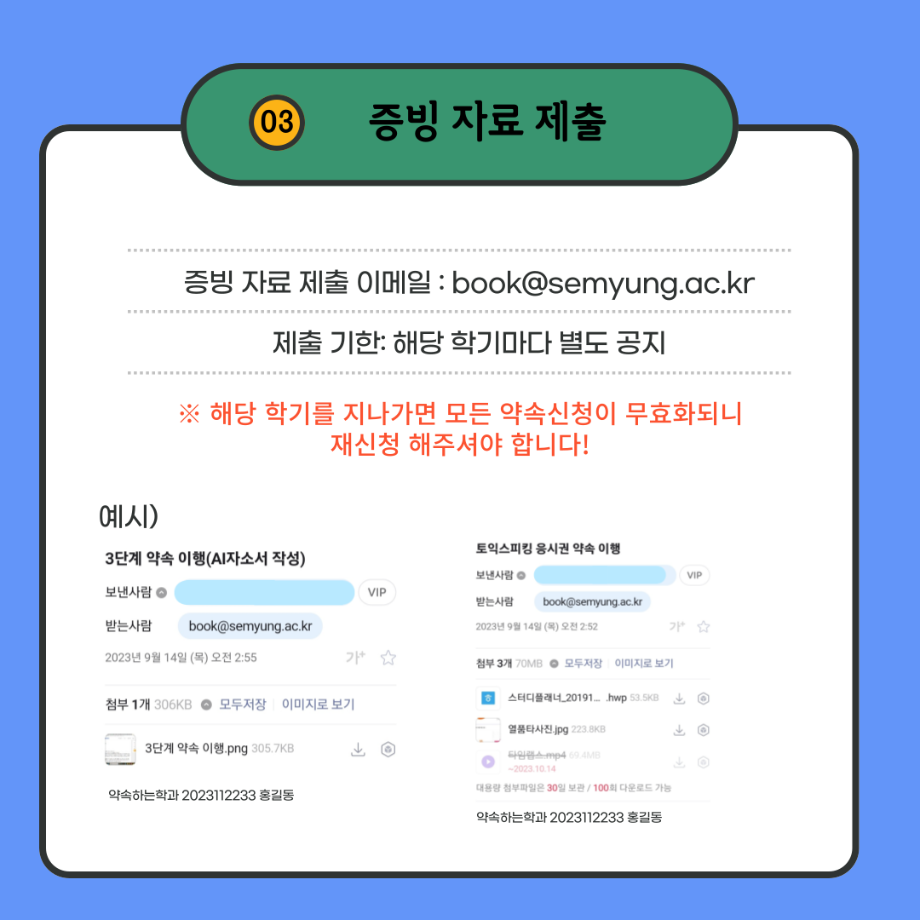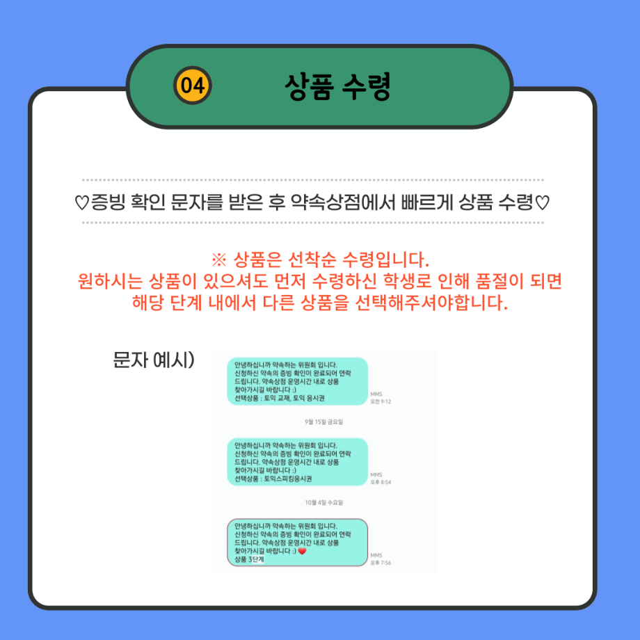 본문 시작 홈으로 포토갤러리 학생위원회 개요 학생위원회 소개 공지사항 활동결과 홈페이지가이드 포토갤러리 페이스북 트위터 프린트 [약속하는 위원회] 함께보는 약속상점 이용안내 학술정보원 2572 2023-11-22 약속상점 이용방법입니다. 목록 이전[꽃피는 위원회] 플라워트리만들기 다음 [ 통하는 위원회] MZ옷코디콘테스트 담당부서 : 장학복지팀 담당자 : - 연락처 : 043-649-1142 최종수정일 : 2024-10-26 만족도조사 만족도 조사 이 페이지에서 제공하는 정보에 대하여 만족하시나요? 매우만족 만족 보통 불만족 매우불만족