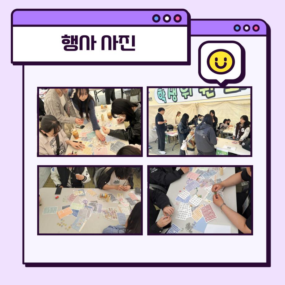 본문 시작 홈으로 포토갤러리 학생위원회 개요 학생위원회 소개 공지사항 활동결과 홈페이지가이드 포토갤러리 페이스북 트위터 프린트 [꽃피는 위원회] 행운을 가져다주는 책갈피 만들기 학생처 1772 2024-05-13 < 행운을 가져다주는 책갈피 만들기 > 일시 : 2024.05.09(목) 11:00~14:00 장소 : 학생회관 앞 광장 학생위원회 부스 참여인원 : 교내 구성원 144명 참여 꽃피는 위원회 행사에 참여해주신 본교 구성원 모두 감사드립니다. 추후 행사도 많은 관심부탁드립니다. 목록 이전[꽃피는 위원회] 벚꽃사진 콘테스트 결과 다음 [생각하는 위원회] You Think?(유띵크) 청룡체전부스 담당부서 : 장학복지팀 담당자 : - 연락처 : 043-649-1142 최종수정일 : 2024-10-26 만족도조사 만족도 조사 이 페이지에서 제공하는 정보에 대하여 만족하시나요? 매우만족 만족 보통 불만족 매우불만족