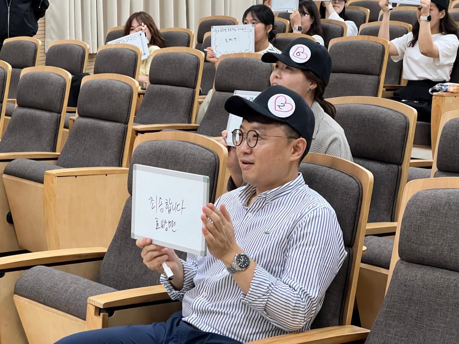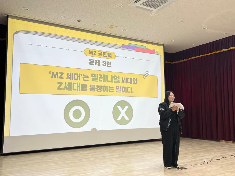 본문 시작 홈으로 포토갤러리 학생위원회 개요 학생위원회 소개 공지사항 활동결과 홈페이지가이드 포토갤러리 페이스북 트위터 프린트 [통하는 위원회]MZ 골든벨 대학혁신지원단 1836 2024-06-07 1) 행사일시 : 2024.05.07.(목) 14:00 2) 행사장소 : 민송도서관 S:MU 콘텐츠홀 3) 행사내용 : MZ 세대와 X 세대 문화를 주제로 골든벨을 개최하여 교직원들과 학생들이 서로의 문화를 배우고 가까워질 수 있는 계기를 마련 4) 참여인원 : 38명 - 통하는 위원회 13명 - 참여자 25명 (교수 3명, 조교 9명, 직원 12명) 목록 이전[통하는 위원회] MZ력 & X력 테스트 다음 [밀어주는 위원회] 꿈실현장학금 장학증서 수여식 담당부서 : 장학복지팀 담당자 : - 연락처 : 043-649-1142 최종수정일 : 2024-10-26 만족도조사 만족도 조사 이 페이지에서 제공하는 정보에 대하여 만족하시나요? 매우만족 만족 보통 불만족 매우불만족