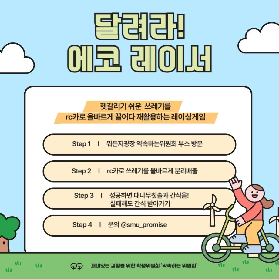 약속하는 위원회에서는 뭐든지 광장에서 헷갈리기 쉬운 쓰레기를 일렬로 놓은 후 RC카 두대를 이용하여 쓰레기를 올바르게 끌어다 재활용하는 레이싱 게임을 진행할 예정입니다!