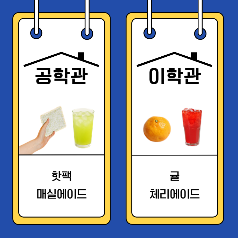 본문 시작 홈으로 공지사항 학생위원회 개요 학생위원회 소개 공지사항 활동결과 홈페이지가이드 프로그램 계획 프로그램 계획 세명대학교 공지사항 프로그램 계획 페이스북 트위터 프린트 [맛있는 위원회] 숨터에 놀러오세요 학생처 991 2025-11-18 1. 행사명: 제2차 숨터 활성화 2. 일시: 2025. 11. 18. (화), 13:00 ~ 15:00 3. 장소: 공학관 숨터 및 이학관 숨터 4. 내용: 학관별 물품 나눔 및 추가 물품 비치 가. 학관별 물품 나눔 1) 공학관 숨터: 매실에이드 및 핫팩 2) 이학관 숨터: 체리에이드 및 귤 나. 추가 물품 비치 - 공학과 숨터 및 이학관 숨터에 충전기, 멀티탭, 볼펜, 보드게임 추가 비치 목록 이전[생각하는 위원회/ 약속하는 위원회] 세명파티시에 다음 제 4회 학생위원회 최종보고회 시행 담당부서 : 장학복지팀 담당자 : - 연락처 : 043-649-1142 최종수정일 : 2024-10-26 만족도조사 만족도 조사 이 페이지에서 제공하는 정보에 대하여 만족하시나요? 매우만족 만족 보통 불만족 매우불만족
