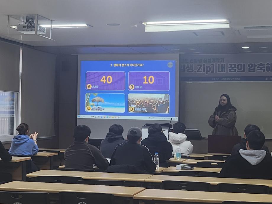 본문 시작 홈으로 커뮤니티 학과소개 교수소개 교육과정 커뮤니티 홈페이지가이드 포토갤러리 학과공지 학사일정 채용정보 및 자료 학생회 포토갤러리 포토갤러리 페이스북 트위터 프린트 2026학년도 신입생 꿈설계학기 재난안전학과 295 2026-03-04 목록 이전2026학년도 신입생 꿈설계학기 동영상 다음 2026학년도 신입생 환영회 만족도조사 만족도 조사 이 페이지에서 제공하는 정보에 대하여 만족하시나요? 매우만족 만족 보통 불만족 매우불만족
