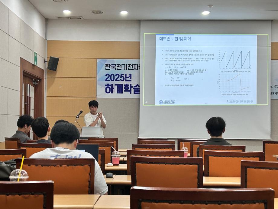 본문 시작 홈으로 커뮤니티 학과소개 교수소개 교육과정 커뮤니티 입학 정보 홈페이지가이드 포토갤러리 학과공지 취업/실습정보 포토갤러리 포토갤러리 페이스북 트위터 프린트 한국전기전자학회_하계학술대회 참여 전기전자공학과 966 2025-08-14 8월 12일부터 14일까지 제주대학교에서 열린 한국전기전자학회 하계학술대회에 전기공학과 학생들이 참여하였다. 학생들은 학부생 특별세션인 논문 경진대회에 참가하여 동상 1개, 장려상 2개를 수상하는 성과를 거두었다. 목록 이전전기전자공학과_여름학기 공동교육 진행 다음 진로직업캠프 진행 만족도조사 만족도 조사 이 페이지에서 제공하는 정보에 대하여 만족하시나요? 매우만족 만족 보통 불만족 매우불만족