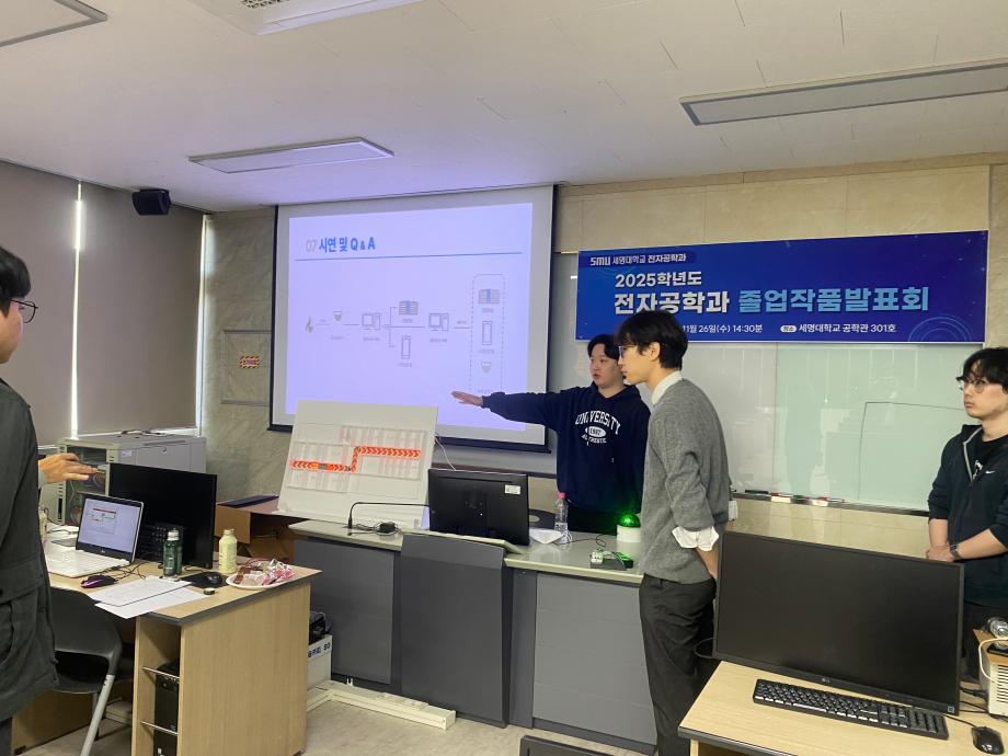 본문 시작 홈으로 커뮤니티 학과소개 교수소개 교육과정 커뮤니티 입학 정보 홈페이지가이드 포토갤러리 학과공지 취업/실습정보 포토갤러리 포토갤러리 페이스북 트위터 프린트 전자공학과 졸업작품 발표회 전기전자공학과 977 2025-12-30 전자공학과 졸업작품 발표회 목록 이전2025학년도 전기전자공학과 MT 다음 2026학년도 신입생 꿈 설계학기 만족도조사 만족도 조사 이 페이지에서 제공하는 정보에 대하여 만족하시나요? 매우만족 만족 보통 불만족 매우불만족