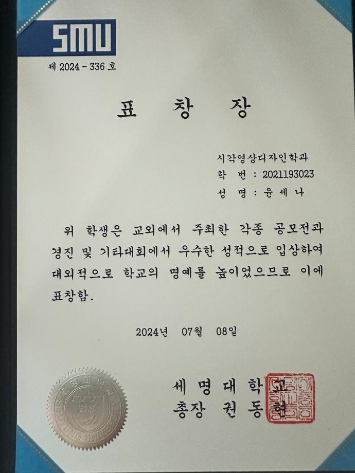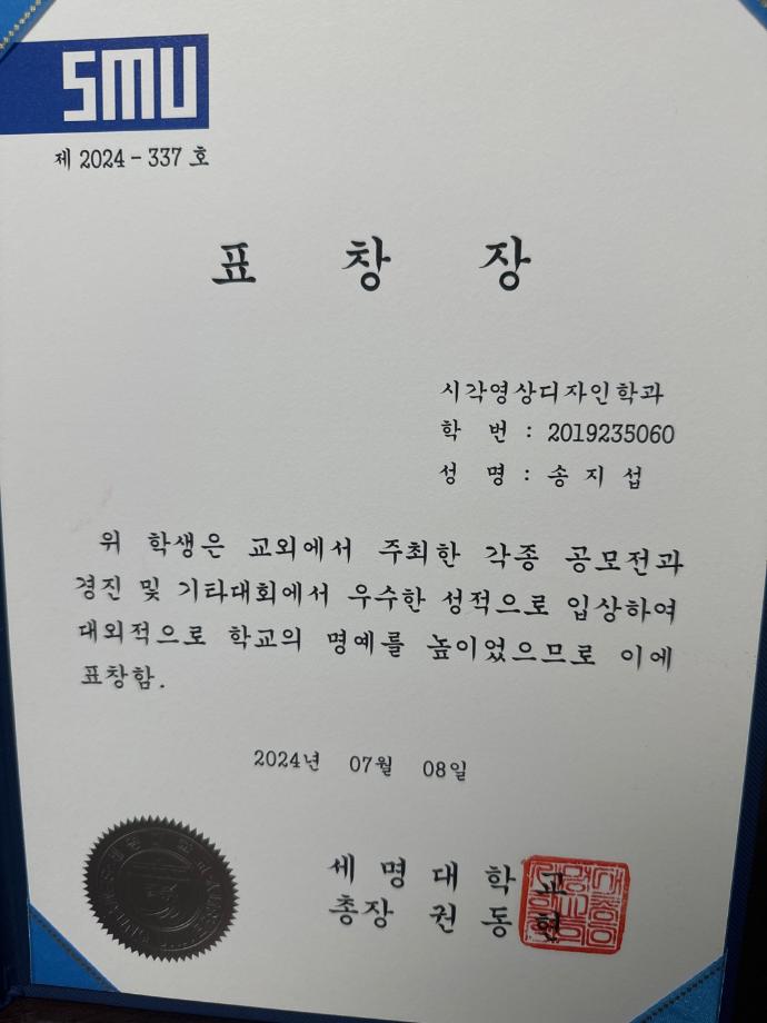 본문 시작 홈으로 학과자랑 학과소개 학과과정 시영소식 입학/취업 AI 학과자랑 SNS소통 홈페이지가이드 학과자랑 학과자랑 갤러리 공모전 동아리 졸업전시회 학과자랑 페이스북 트위터 프린트 2024학년도 1학기 총장표창 (시각영상디자인학과 3명 수상) 시각영상디자인학과 1762 2024-08-01 2024학년도 1학기 총장표창 (시각영상디자인학과 3명 수상) -학교의 명예를 빛낸 학생들에게 수여하는 총장 표창을 시각영상디자인학과에서 3명이 수상하였습니다~ (2023 국제사이버디자인트렌드공모전 대상/ 금상 수상 등) 목록 이전2024 여름 현장실습 학생 인터뷰 다음 외국인 근로자를 위한 숏폼 영상 공모전 - DO YOU KNOW 안전? 담당부서 : 시각영상디자인학과 담당자 : - 연락처 : 043-649-1726 최종수정일 : 2024-10-26 만족도조사 만족도 조사 이 페이지에서 제공하는 정보에 대하여 만족하시나요? 매우만족 만족 보통 불만족 매우불만족