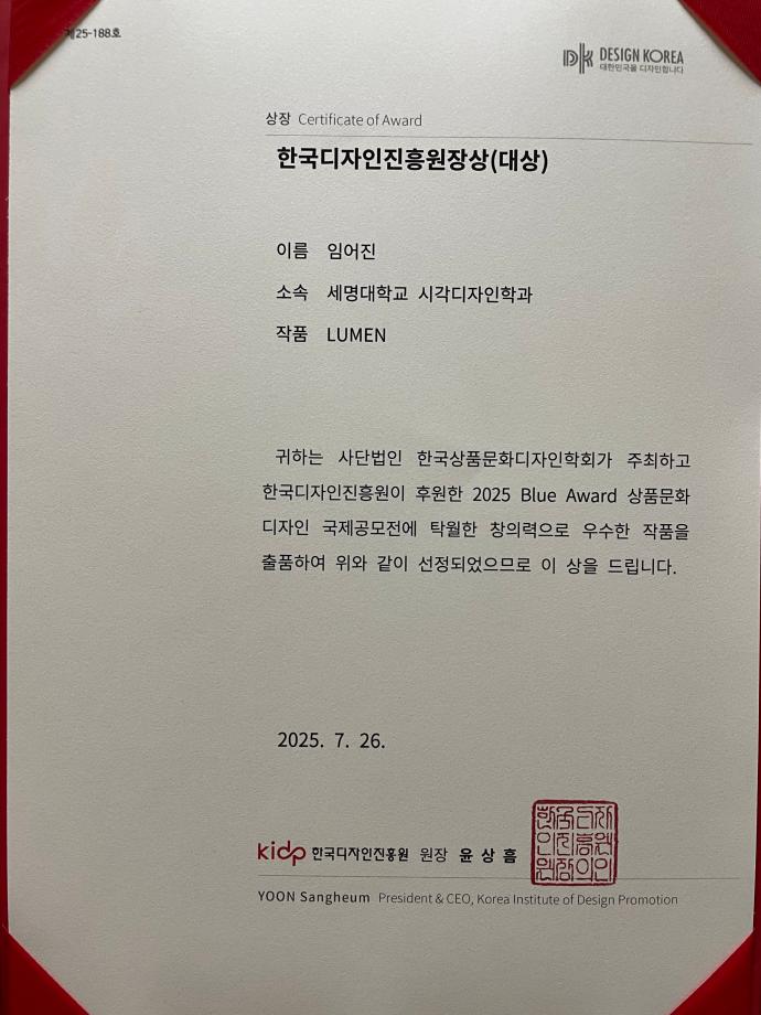 본문 시작 홈으로 학과자랑 학과소개 학과과정 시영소식 입학/취업 AI 학과자랑 SNS소통 홈페이지가이드 학과자랑 학과자랑 갤러리 공모전 동아리 졸업전시회 학과자랑 페이스북 트위터 프린트 2025 블루어워드 국제공모전 - 대상 수상 (임*진 학생) 시각영상디자인학과 843 2025-09-04 대상 수상 축하합니다~ 목록 이전2025학년도 후기(순수외국인) 경희대학교 일반대학원 박사과정 합격 - 이* 학생 다음 2025 자기설계 해외배낭연수 - 시각영상디자인학과 3명(합격) 참여 담당부서 : 시각영상디자인학과 담당자 : - 연락처 : 043-649-1726 최종수정일 : 2024-10-26 만족도조사 만족도 조사 이 페이지에서 제공하는 정보에 대하여 만족하시나요? 매우만족 만족 보통 불만족 매우불만족