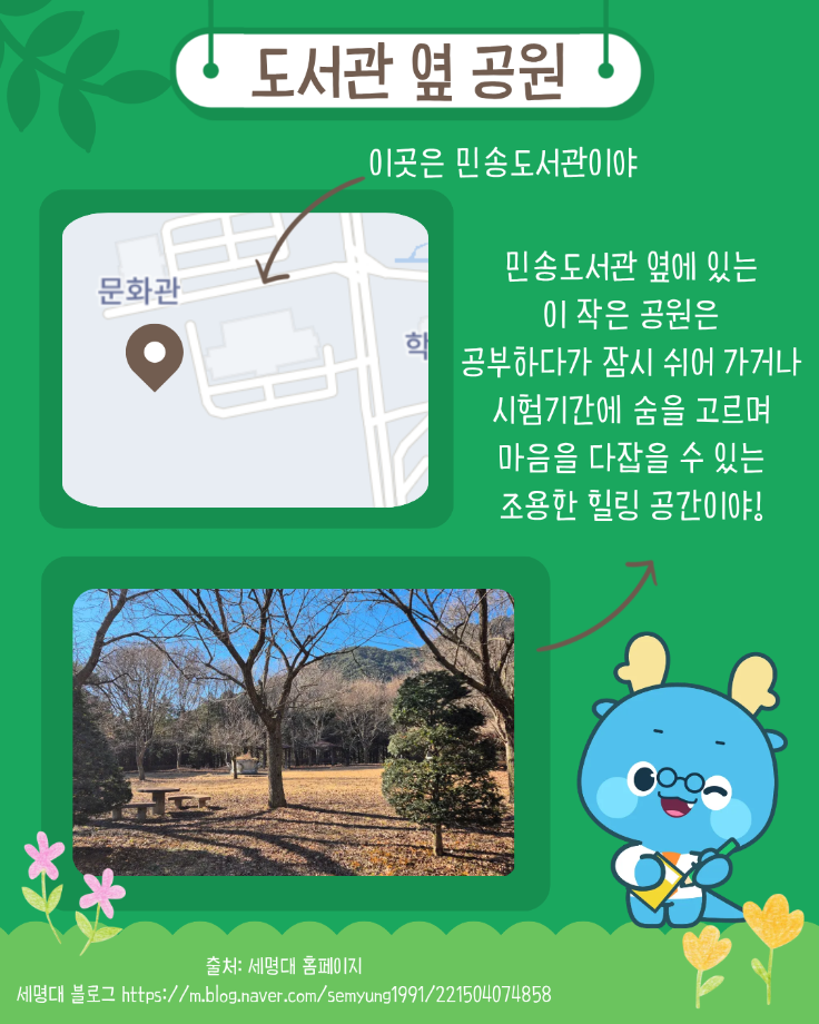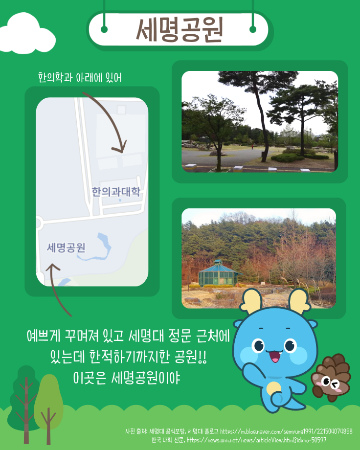 본문 시작 홈으로 MCC News 학과소개 교수소개 학과과정 MCC News MCC SNS 홈페이지가이드 미디어 정보통 학과 및 재학생 교수 및 졸업생 미디어 정보통 미디어 정보통 페이스북 트위터 프린트 세명대의 숨겨진 장소를 알려줄게! 미디어콘텐츠창작학과 869 2026-01-19 자세한 내용은 세명대학교 블로그에서 확인하실 수 있습니다. 목록 이전끄라몽 84회 CAT(고양이) 디자인 공모전 다음 2026년 제17회 장애인식개선 공모전 담당부서 : 미디어콘텐츠창작학과 담당자 : - 연락처 : 043-649-1741 최종수정일 : 2024-10-26 만족도조사 만족도 조사 이 페이지에서 제공하는 정보에 대하여 만족하시나요? 매우만족 만족 보통 불만족 매우불만족