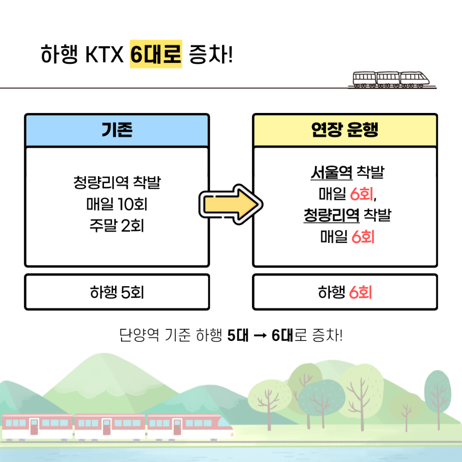 서울역에서 착발하는 열차 매일 6회,