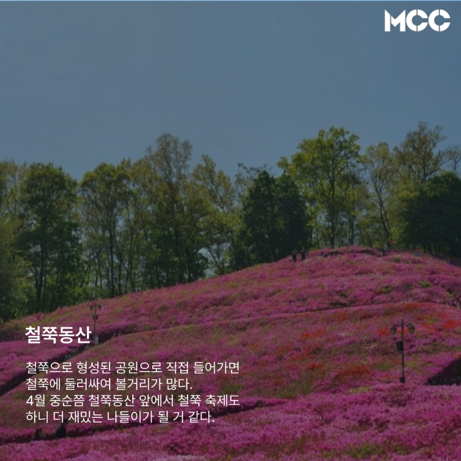 본문 시작 홈으로 MCC News 학과소개 교수소개 학과과정 MCC News MCC SNS 홈페이지가이드 미디어 정보통 학과 및 재학생 교수 및 졸업생 미디어 정보통 미디어 정보통 페이스북 트위터 프린트 💐봄에 나들이 가기 좋은 장소~!🌸 미디어콘텐츠창작학과 1886 2025-04-11 미디어콘텐츠창작학과에서 봄을 맞아 나들이 가기 좋은 장소를 추천해 드립니다. 사랑하는 사람과 함께 나들이 가는 건 어떨까요? 자세한 내용은 미디어콘텐츠창작학과 인스타그램에서 확인해주세요 @smu_mcc 목록 이전제7회 민송백일장 개최 다음 K-REELS 숏폼 컨텐츠 공모전 담당부서 : 미디어콘텐츠창작학과 담당자 : - 연락처 : 043-649-1741 최종수정일 : 2024-10-26 만족도조사 만족도 조사 이 페이지에서 제공하는 정보에 대하여 만족하시나요? 매우만족 만족 보통 불만족 매우불만족