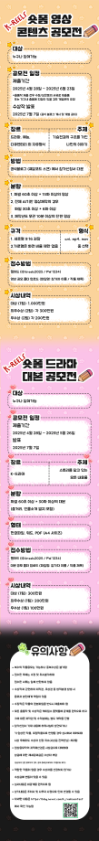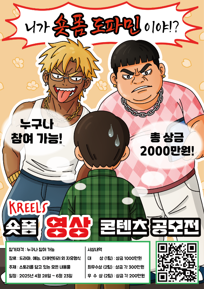 본문 시작 홈으로 MCC News 학과소개 교수소개 학과과정 MCC News MCC SNS 홈페이지가이드 미디어 정보통 학과 및 재학생 교수 및 졸업생 미디어 정보통 미디어 정보통 페이스북 트위터 프린트 K-REELS 숏폼 컨텐츠 공모전 미디어콘텐츠창작학과 1652 2025-04-24 자세한 내용은 저희 블로그(큐알코드)를 통해서 지속적으로 업데이트가 된다고 하니 많은 관심바랍니다. https://blog.naver.com/k_reelscontest 목록 이전💐봄에 나들이 가기 좋은 장소~!🌸 다음 커뮤니케이션디자인국제공모전 담당부서 : 미디어콘텐츠창작학과 담당자 : - 연락처 : 043-649-1741 최종수정일 : 2024-10-26 만족도조사 만족도 조사 이 페이지에서 제공하는 정보에 대하여 만족하시나요? 매우만족 만족 보통 불만족 매우불만족