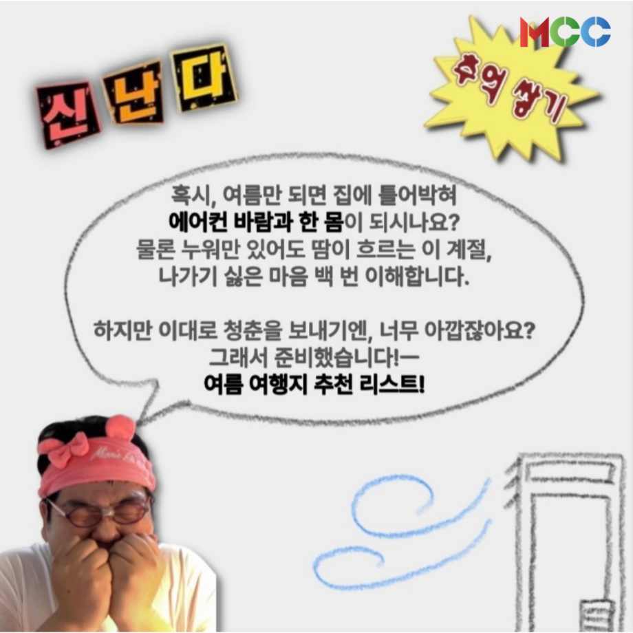 본문 시작 홈으로 MCC News 학과소개 교수소개 학과과정 MCC News MCC SNS 홈페이지가이드 미디어 정보통 학과 및 재학생 교수 및 졸업생 미디어 정보통 미디어 정보통 페이스북 트위터 프린트 여름방학 갈만한 여행지 추천.zip 미디어콘텐츠창작학과 891 2025-07-07 “놀러가고 싶다 격하게..!”😩 🌞여름방학 갈만한 여행지 추천.zip🌞 1.강릉 인목해변 2.통영 욕지도/동피랑마을 3.제주 구좌읍/세화 해변 4.서울 노들섬&한강공원 5.속초 외옹치해변 자세한 내용은 미콘창 인스타그램에서 확인해주세요 @smu_mcc 목록 다음 2025 친환경 에너지 콘텐츠 공모전 다음 미디어콘텐츠창작학과 궁금해?! 담당부서 : 미디어콘텐츠창작학과 담당자 : - 연락처 : 043-649-1741 최종수정일 : 2024-10-26 만족도조사 만족도 조사 이 페이지에서 제공하는 정보에 대하여 만족하시나요? 매우만족 만족 보통 불만족 매우불만족