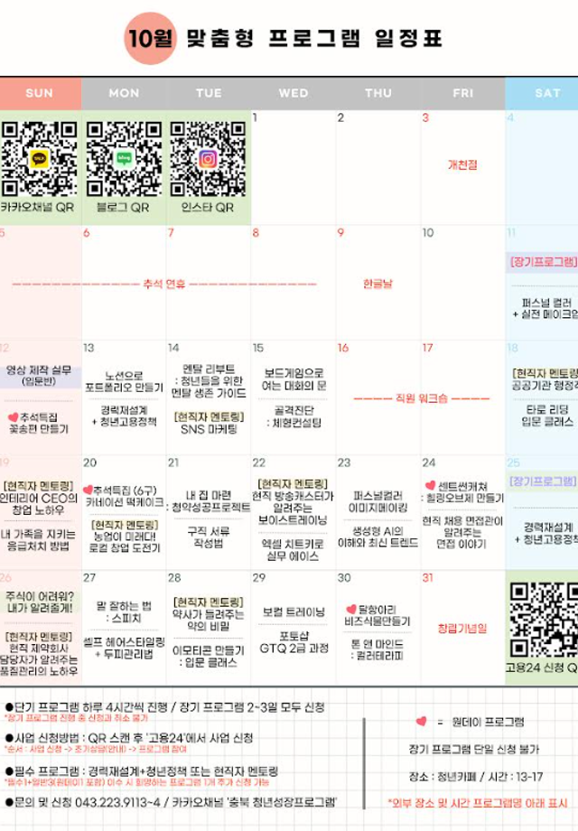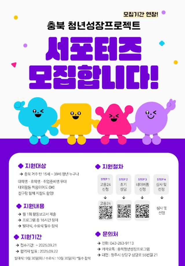 본문 시작 홈으로 MCC News 학과소개 교수소개 학과과정 MCC News MCC SNS 홈페이지가이드 미디어 정보통 학과 및 재학생 교수 및 졸업생 미디어 정보통 미디어 정보통 페이스북 트위터 프린트 충북 청년성장프로젝트 안내 미디어콘텐츠창작학과 1091 2025-09-16 충북 청년성장프로젝트 안내해드립니다. 목록 이전2025학년도 2학기 원어민 교수와의 대화 이전「2025년 농업·농촌 영상·사진 공모전」 담당부서 : 미디어콘텐츠창작학과 담당자 : - 연락처 : 043-649-1741 최종수정일 : 2024-10-26 만족도조사 만족도 조사 이 페이지에서 제공하는 정보에 대하여 만족하시나요? 매우만족 만족 보통 불만족 매우불만족