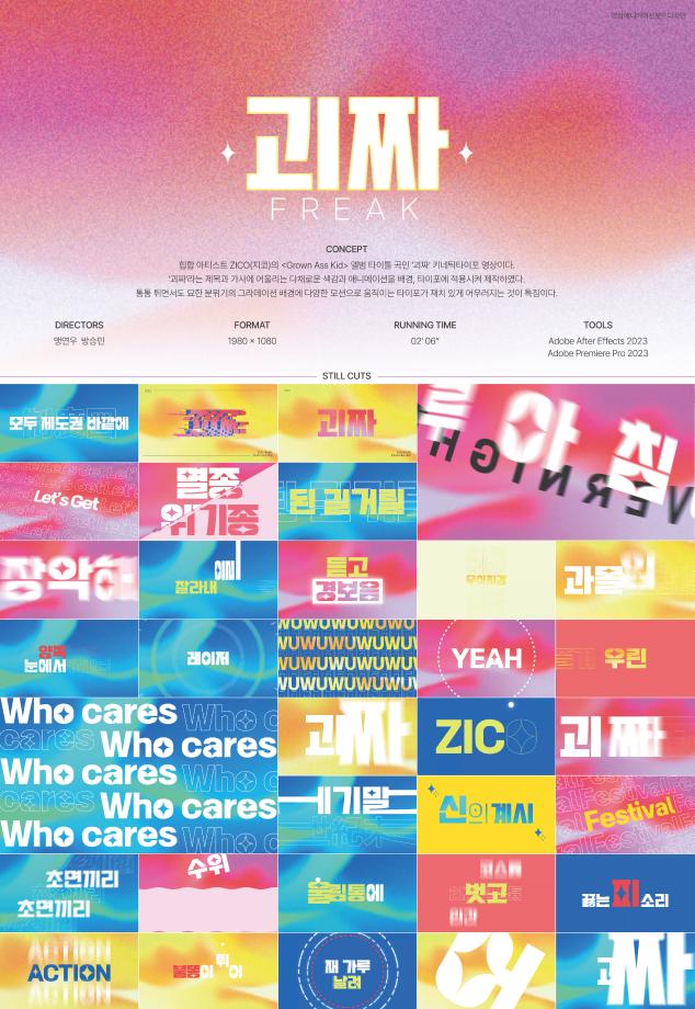 본문 시작 홈으로 학과자랑 학과소개 학과과정 시영소식 입학/취업 AI 학과자랑 SNS소통 홈페이지가이드 졸업전시회 학과자랑 갤러리 공모전 동아리 졸업전시회 2023 졸업작품 2022 졸업작품 2023 졸업작품 2024 졸업전시 2025 졸업전시 2026 졸업전시 2023 졸업작품 페이스북 트위터 프린트 2023년도 시각영상디자인학과 졸업작품-영상 부문(1) 시각영상디자인학과 1947 2023-12-04 목록 이전2023년도 시각영상디자인학과 졸업작품-광고 부문(3) 다음 2023년도 시각영상디자인학과 졸업작품-영상 부문(2) 만족도조사 만족도 조사 이 페이지에서 제공하는 정보에 대하여 만족하시나요? 매우만족 만족 보통 불만족 매우불만족