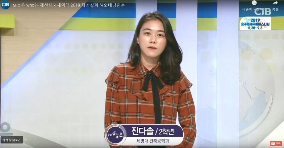 본문 시작 홈으로 커뮤니티 학과소개 교수소개 교육과정 학과 행사 및 활동 커뮤니티 홈페이지가이드 열린정보 학과일정 학과공지 채용정보 및 자료 열린정보 포토갤러리 먹거리, 즐길거리 포토갤러리 사진 사진 영상 사진 페이스북 트위터 프린트 사진 영상 CJB 청주방송 출연 건축학과 1304 2019-09-05 CJB 청주방송 오늘은 who ? (2019년 9월 5일) 제천시 X 세명대 2019 제천시 해외배낭연수 프로그램 세명대학교 건축공학과 2학년 진다솔 학생 출연 CJB 청주방송 다시보기 링크 https://www.cjb.co.kr/home/sub.php?menukey=322&mod=view&no=9019&scode=99999999 목록 다음 2019학년도 Archi-608 개소식 이전제2회 국제건축디자인워크숍(IADW) 및 태국 건축현장 체험 만족도조사 만족도 조사 이 페이지에서 제공하는 정보에 대하여 만족하시나요? 매우만족 만족 보통 불만족 매우불만족