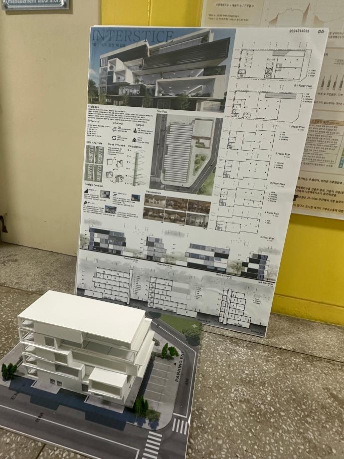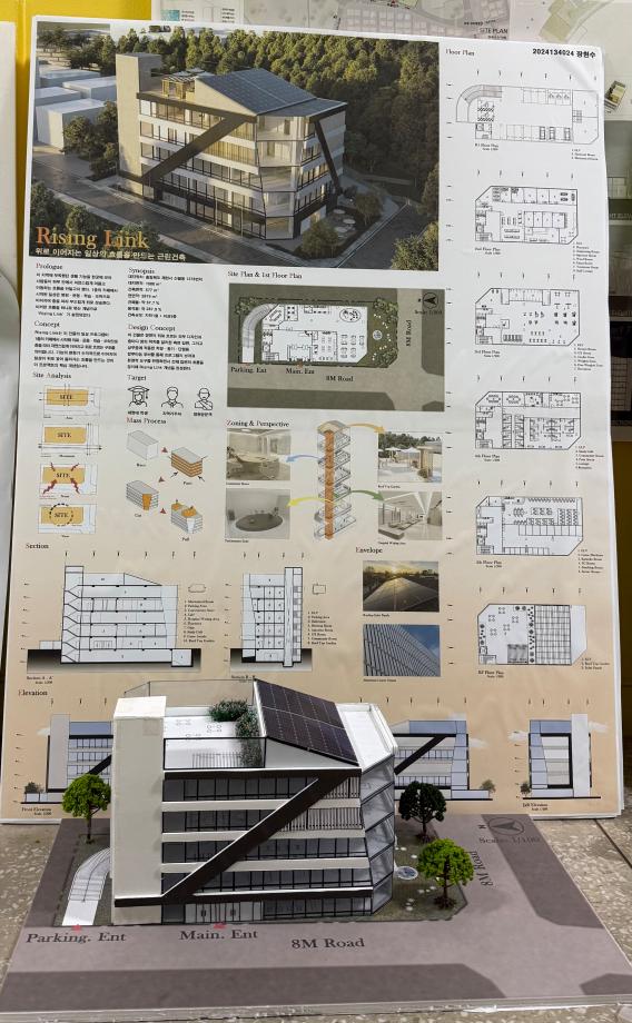 본문 시작 홈으로 커뮤니티 학과소개 교수소개 교육과정 학과 행사 및 활동 커뮤니티 홈페이지가이드 열린정보 학과일정 학과공지 채용정보 및 자료 열린정보 포토갤러리 먹거리, 즐길거리 포토갤러리 사진 사진 영상 사진 페이스북 트위터 프린트 사진 영상 2학년 기말 설계과제 건축학과 443 2025-12-23 2학년 설계 스튜디오 주제는 🏢 근린생활시설. 일상과 도시 사이에서 사람들의 활동을 담아내는 공간을 제안했습니다. 목록 이전3학년 기말 설계과제 다음 1학년 기말 설계과제 만족도조사 만족도 조사 이 페이지에서 제공하는 정보에 대하여 만족하시나요? 매우만족 만족 보통 불만족 매우불만족