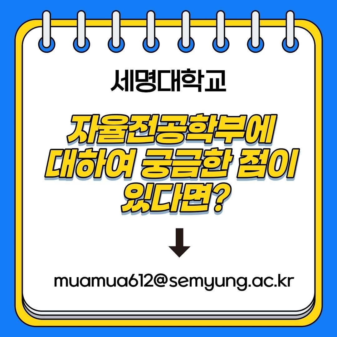 본문 시작 홈으로 커뮤니티 학부소개 교수소개 학부과정 커뮤니티 입학안내 홈페이지가이드 학부 공지사항 학부 공지사항 자료실 FAQ 인스타그램 ➜ 학부 공지사항 페이스북 트위터 프린트 세명대학교 대학 시설 안내 자율전공학부 조회 : 785 등록일 : 2026-02-19 목록 이전선배가 알려주는 기숙사 체크리스트 다음 자율전공학부는 뭐하는 곳일까? 궁금증을 풀어줄 Q&A 만족도조사 만족도 조사 이 페이지에서 제공하는 정보에 대하여 만족하시나요? 매우만족 만족 보통 불만족 매우불만족