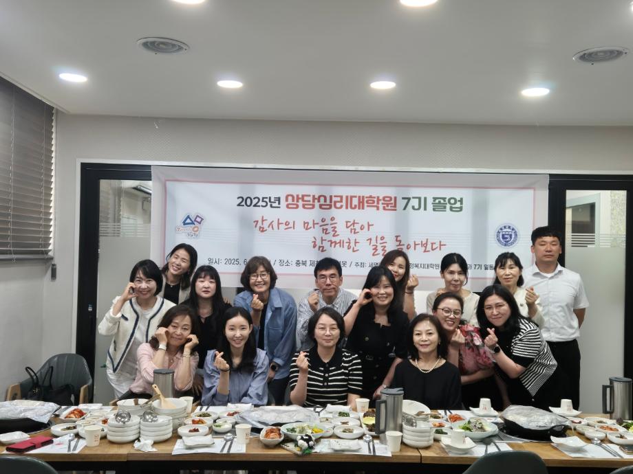본문 시작 홈으로 대학원 커뮤니티 학부소개 교수소개 교육목표 입학안내 학과 커뮤니티 대학원 커뮤니티 홈페이지가이드 대학원 갤러리 대학원 소식 대학원 일정 대학원 갤러리 대학원 갤러리 페이스북 트위터 프린트 석사과정 사은회 개최 상담심리학과 650 2025-06-19 안녕하십니까 세명대학교 상담심리학과입니다. 7기 석사 과정생분들의 졸업을 기념하여 상담심리학과 교수님들과 함께 식사하는 시간을 가졌습니다! 그동안 수고해주신 교수님들께 꽃다발을 전달하고 수업을 들으며 어려웠던 점, 앞으로의 계획, 감사 인사 등 많은 이야기를 나누며 좋은 시간을 보냈습니다. 졸업을 축하드리며 그동안 고생 많으셨습니다. 졸업 후에도 빛날 여러분들의 앞날을 응원하겠습니다. :) 목록 이전석사과정 현장견학 프로그램 다음 표현예술치료 특강 만족도조사 만족도 조사 이 페이지에서 제공하는 정보에 대하여 만족하시나요? 매우만족 만족 보통 불만족 매우불만족