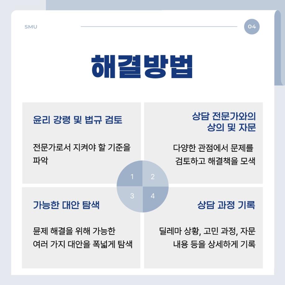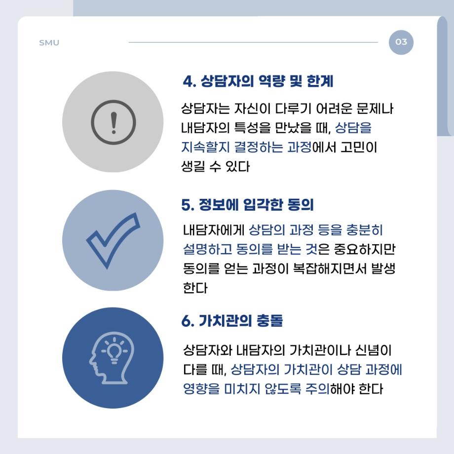 윤리적 딜레마를 마주하고 해결하는 과정을 통해 상담자로서 더 성장할 수 있을 것입니다 ( •⌄• ू )✧