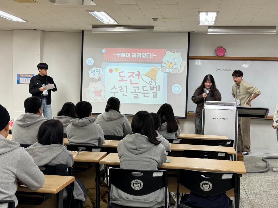 본문 시작 홈으로 커뮤니티 학과소개 교수소개 교육과정 현장실습 및 취업정보 커뮤니티 홈페이지가이드 포토갤러리 학과공지 학사일정 학생회 동아리 학생 소통 광장 포토갤러리 전공자료실 서식자료실 포토갤러리 페이스북 트위터 프린트 [사회복지학과] 2024학년도 꿈설계학기 진행 사회복지학과 2012 2024-02-21 지난 2월 19일~21일 2박 3일동안 24학번 학우들과 신입생 OT 꿈 설계학기 '24 가보자고'를 진행하였습니다. 참여해주신 신입생 여러분들께 즐거운 추억이 됐길 바랍니다. 입학을 축하드립니다:) 목록 다음 [사회복지학과] 2024학년도 개강총회&신입생환영회 진행 다음 [사회복지학과] 연합 MT 진행 만족도조사 만족도 조사 이 페이지에서 제공하는 정보에 대하여 만족하시나요? 매우만족 만족 보통 불만족 매우불만족