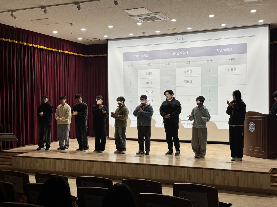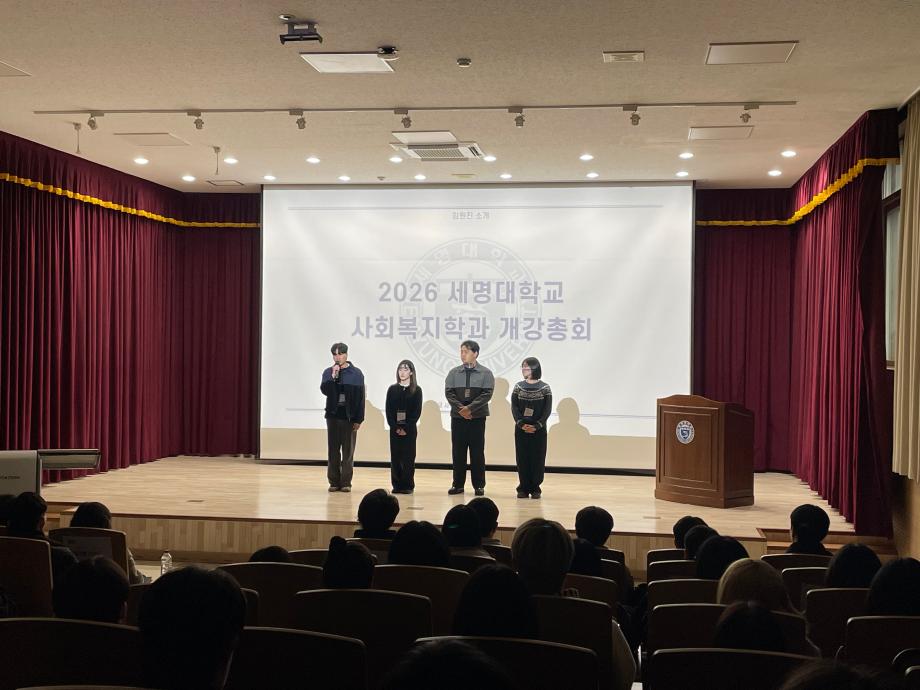 본문 시작 홈으로 커뮤니티 학과소개 교수소개 교육과정 현장실습 및 취업정보 커뮤니티 홈페이지가이드 포토갤러리 학과공지 학사일정 학생회 동아리 학생 소통 광장 포토갤러리 전공자료실 서식자료실 포토갤러리 페이스북 트위터 프린트 [사회복지학과] 2026학년도 개강총회 사회복지학과 51 2026-03-30 일시: 2026. 3. 18. 17:00 장소: 세명대학교 민송도서관 시청각실 지난 3월 18일, 2026학년도 새학기를 맞이하여 사회복지학과 개강총회가 진행되었습니다. 목록 이전[사회과학대학] 제 9회 사회과학대학 토론대회 수상 다음 [사회복지학과] 2026학년도 신입생 환영회 만족도조사 만족도 조사 이 페이지에서 제공하는 정보에 대하여 만족하시나요? 매우만족 만족 보통 불만족 매우불만족