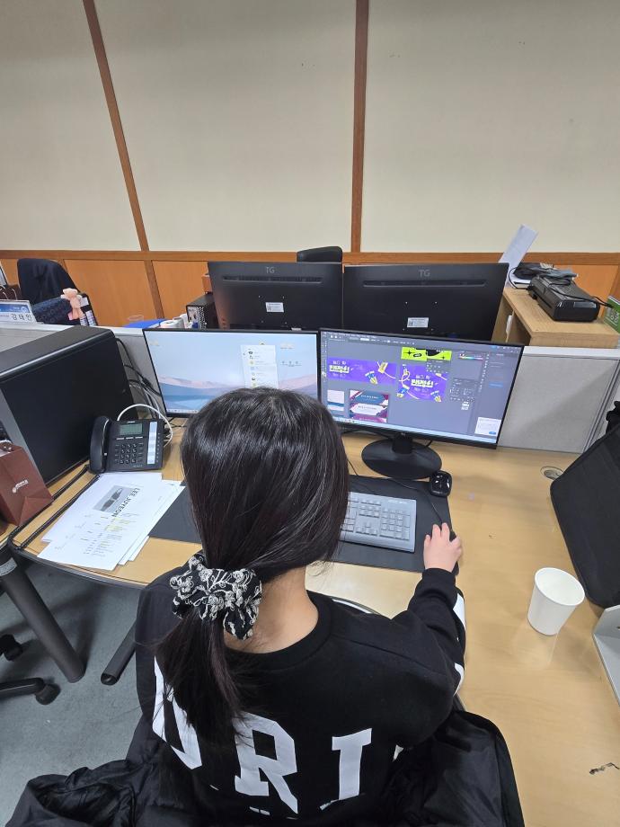 현장실습 기간 동안 주로 포스터와 배너 등 홍보물 제작 업무를 담당했습니다. 단순히 디자인을 만드는 것이 아니라, 전달하고자 하는 내용이 잘 드러나도록 구성하고 가독성을 고려하는 과정이 중요하다는 것을 배웠습니다. 또한 수정 요청에 맞춰 작업을 보완하며 실무에서 요구되는 유연성과 책임감을 기를 수 있었습니다.