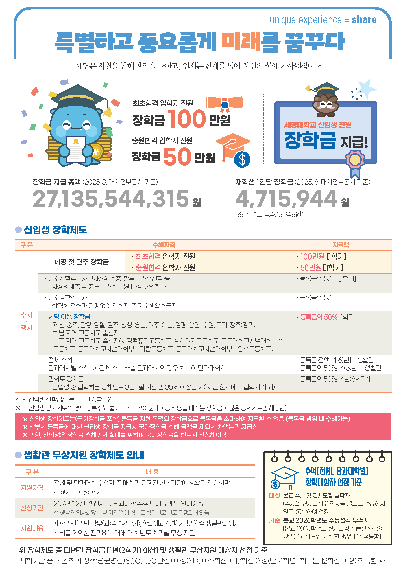 꿈을 위한 든든한 디딤돌이 될 풍부한 장학금